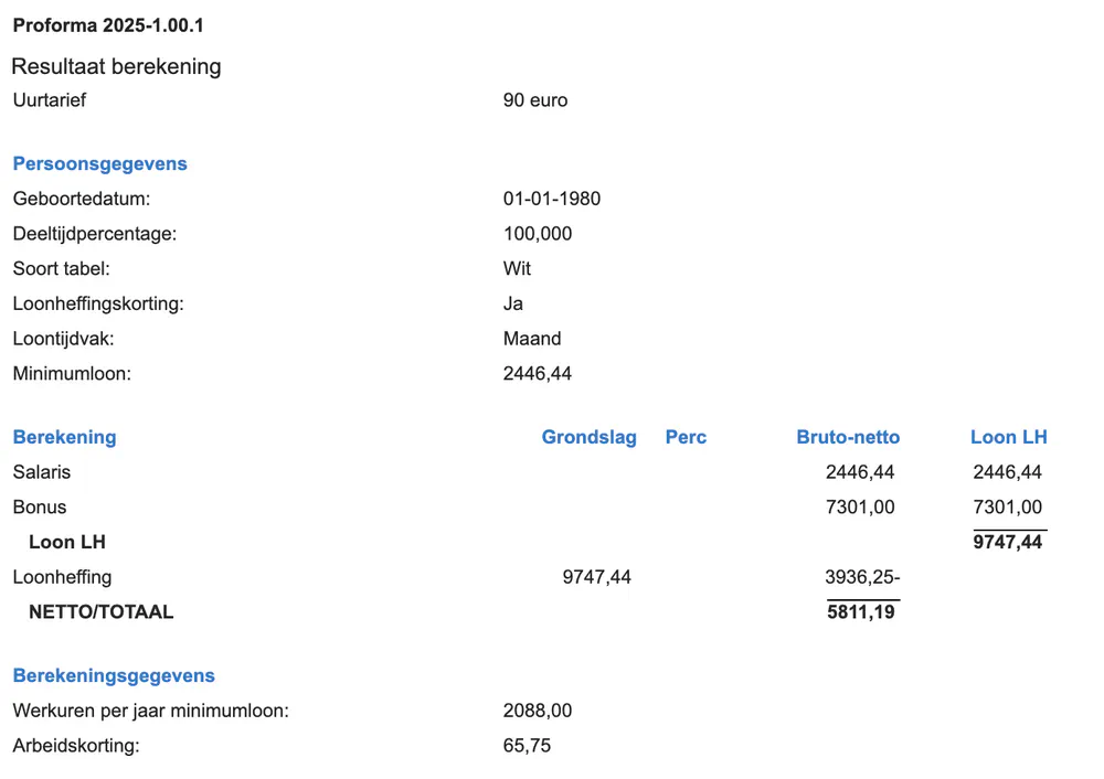 Salaris uurtarief 90 euro