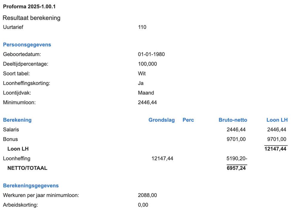 Salaris uurtarief 110 euro